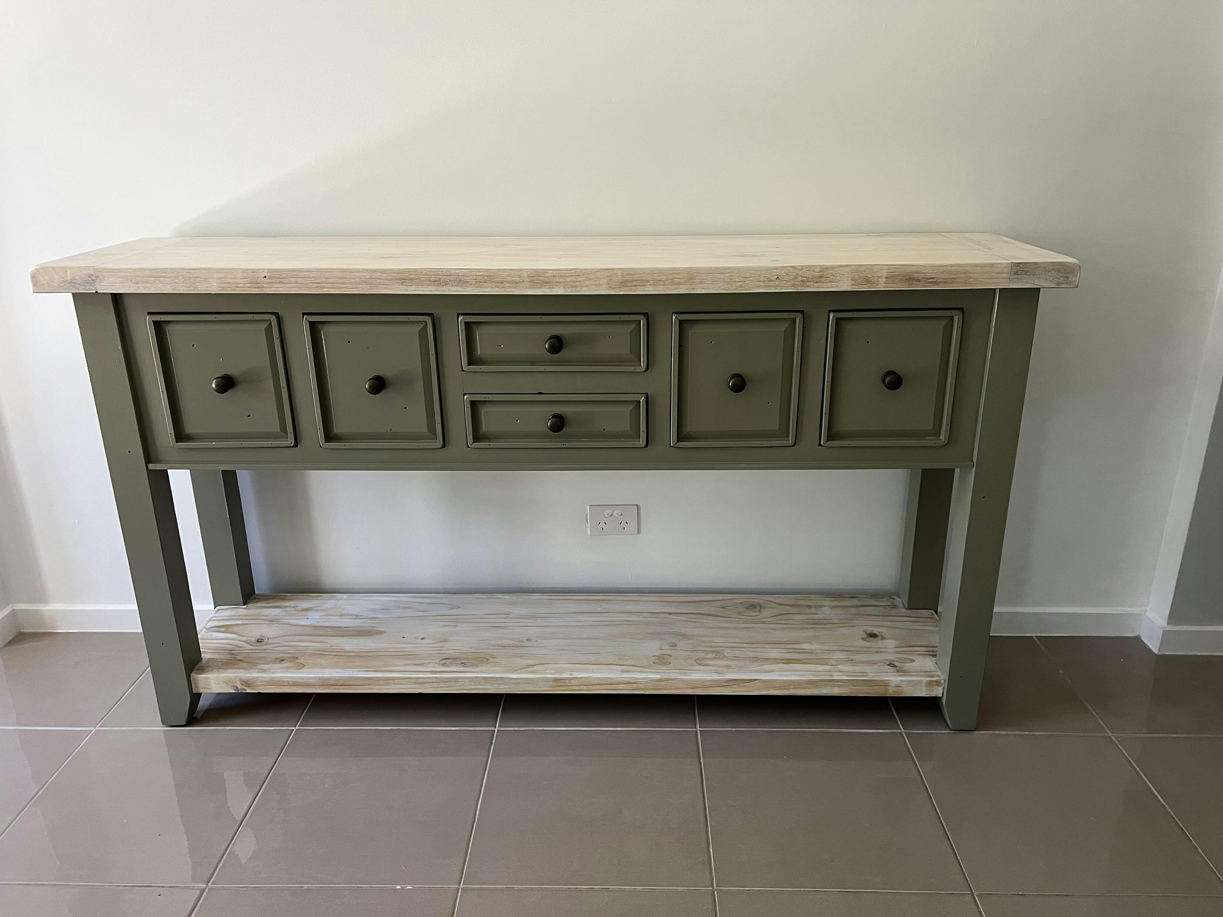 I revamped my timber mirror and sideboard using the beautiful colour of sage.